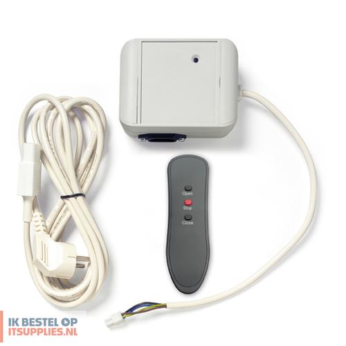 Plug & play infrarood afstandbediening 230 Volt/ 50 Hz met 1 kanaals handzender, een plug & play ontvanger met een geïntegreerd infrarood oog. Standaard geleverd met een apparaatsnoer kleur wit 5 meter met Europese, UK of Zwitserse stekker.
