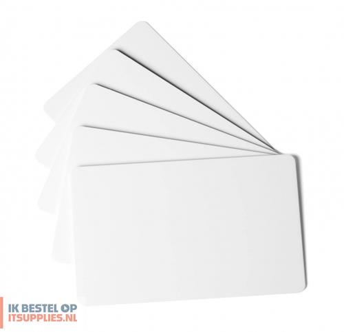 100 PVC kaarten om te bedrukken met DURACARD ID 300. Formaat: 53,98 x 85,60 mm Dikte van de kaart: 0,76 mm