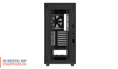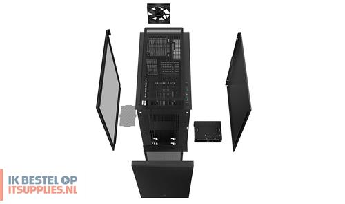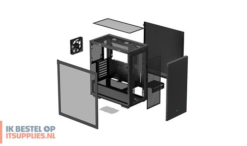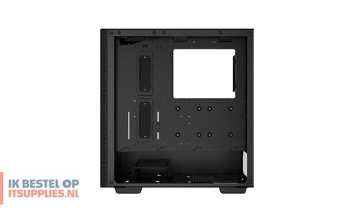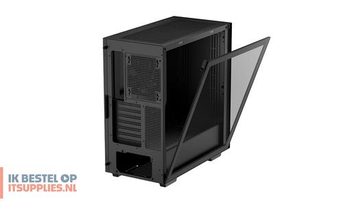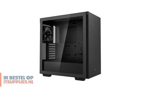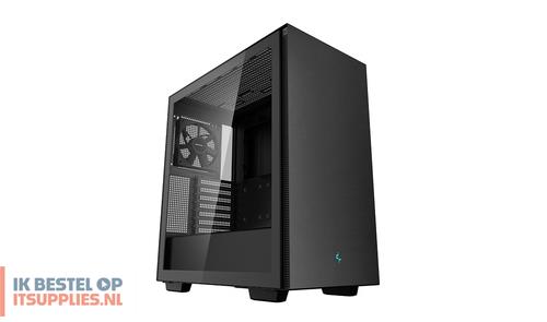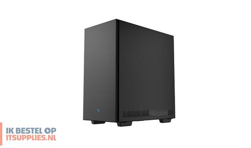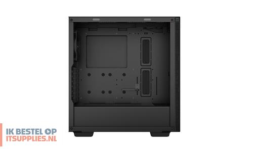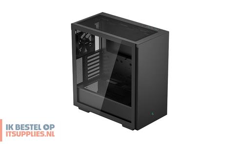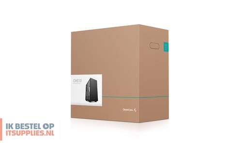 DeepCool CH510. Vormfactor: Midi Tower, Soort: PC, Kleur van het product: Zwart. Vermogenstoevoer locatie: Bodem, Ondersteunde vormfactoren stroomvoorziening: ATX, PS2. Voorste ventilators ondersteunende diameters: 120,140 mm, Geïnstalleerde ventilatoren achterkant: 1x 120 mm, Achterkant ventilators ondersteunende diameters: 120,140 mm. Ondersteunde HDD-groottes: 2.5,3.5". Breedte: 230 mm, Diepte: 435 mm, Hoogte: 471 mm