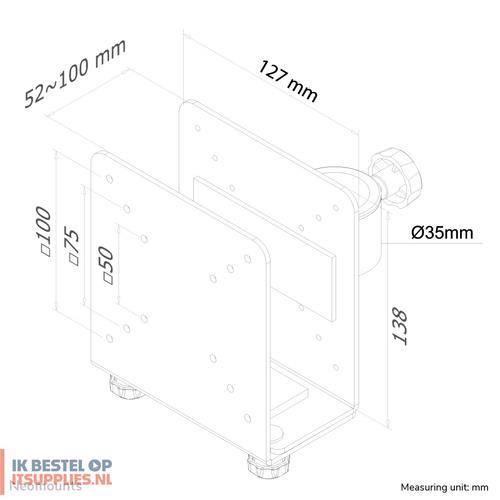 De THINCLIENT-10 kan gecombineerd worden met de volgende specifieke Neomounts monitorarmen: FPMA-D935, FPMA-D935G, FPMA-D935D, FPMA-D935D4, FPMA-D960, FPMA-D960D, FPMA-D965 en de FPMA-D1330 serie. Daarnaast is de houder geschikt voor steunen met een stang van Ø 35 mm.