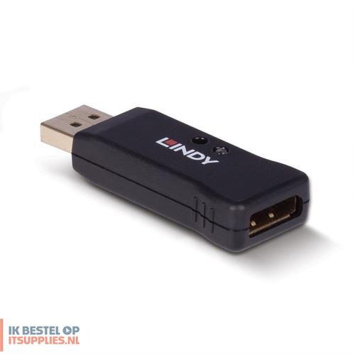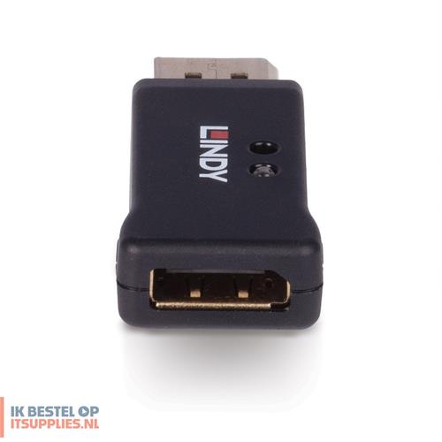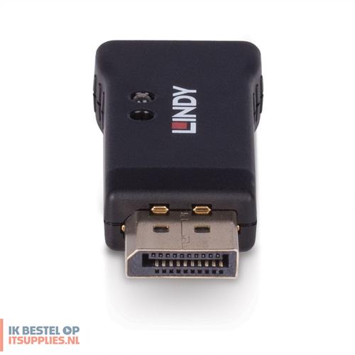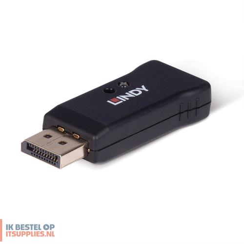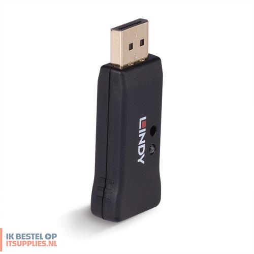 Lindy 32118. Maximale videoresolutie: 7680 x 4320 Pixels, Videoresoluties: 800 x 600,1024 x 768,1280 x 1024,1280 x 720,1280 x 960,1366 x 768,1600 x 1200,1680 x 1050,1920 x..., Bandbreedte: 32,4 Gbit/s. Kleur van het product: Zwart, Materiaal behuizing: Kunststof. Aansluiting video: DisplayPort. Breedte: 25,2 mm, Diepte: 51,6 mm, Hoogte: 12,1 mm. Breedte verpakking: 136 mm, Diepte verpakking: 138 mm, Gewicht verpakking: 26 g