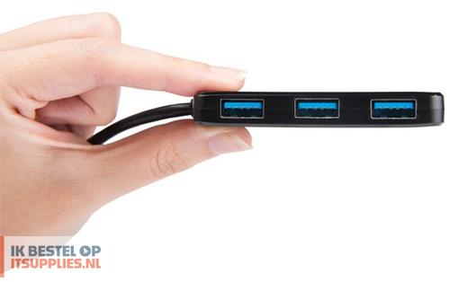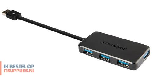 Ideaal voor gebruik met Ultrabooks en dunne en lichte laptops, Transcend's SuperSpeed USB 3.1 Gen1 Hub transformeert één enkele USB 3.1 Gen1-poort in vier, waardoor het aantal krachtige 3.1 Gen1-apparaten die je op je computer kunt aansluiten meteen wordt uitgebreid. Omdat het een USB-bus is met aangesloten kabel, is er geen extra voedingsadapter nodig. Bovendien kun je met het ultraslanke en draagbare ontwerp bestanden overbrengen waar je ook bent.