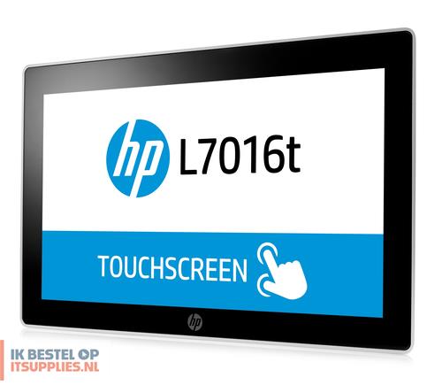 HP L7016t. Beeldschermdiagonaal: 39,6 cm (15.6"), Helderheid: 360 cd/m². Kleur van het product: Zilver, Bereik kantelhoek: -5 - 135°, HP-segment: Bedrijf. Type stroombron: USB, AC-adapter, uitgangsspanning: 12 V. Breedte: 397,3 mm, Diepte: 45 mm, Hoogte: 251,4 mm. Breedte verpakking: 4780 mm, Diepte verpakking: 1400 mm, Hoogte verpakking: 3300 mm