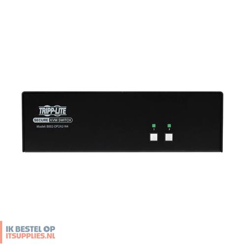 Tripp Lite B002-DP2A2-N4. Aansluiting toetsenbord: USB, Aansluiting muis: USB, Aansluiting video: DisplayPort. HD type: 4K Ultra HD, Maximum resolutie: 3840 x 2160 Pixels. Kleur van het product: Zwart, Materiaal behuizing: Metaal, Snoerlengte: 1,5 m. Stroombron: DC, Ingangsspanning: 100 - 240 V, AC-ingangsfrequentie: 50 - 60 Hz. Certificaten van naleving: RoHS, Federal Communications Commission (FCC), UKCA, CE