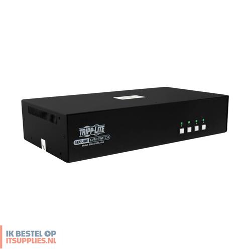 Tripp Lite B002-DV2A4-N4. Aansluiting toetsenbord: USB, Aansluiting muis: USB, Aansluiting video: DVI-I. HD type: WQXGA, Maximum resolutie: 2560 x 1600 Pixels, Videobandbreedte: 60 Hz. Kleur van het product: Zwart, Materiaal behuizing: Metaal, Snoerlengte: 1,5 m. Stroombron: DC, Ingangsspanning: 100 - 240 V, AC-ingangsfrequentie: 50 - 60 Hz. Certificaten van naleving: RoHS, Federal Communications Commission (FCC), UKCA, CE