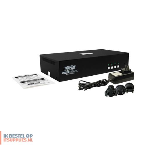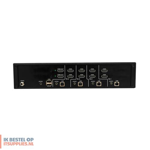 Tripp Lite B002-H2A4-N4. Aansluiting toetsenbord: USB, Aansluiting muis: USB, Aansluiting video: HDMI. HD type: 4K Ultra HD, Maximum resolutie: 3840 x 2160 Pixels, Videobandbreedte: 60 Hz. Kleur van het product: Zwart, Materiaal behuizing: Metaal, Snoerlengte: 1,5 m. Stroombron: DC, Ingangsspanning: 100 - 240 V, AC-ingangsfrequentie: 50 - 60 Hz. Certificaten van naleving: CE, Federal Communications Commission (FCC), RoHS, UKCA
