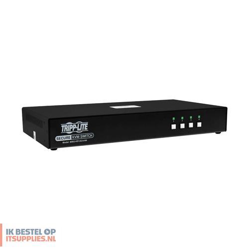 Tripp Lite B002-HD1AC4-N4. Aansluiting toetsenbord: USB, Aansluiting muis: USB, Aansluiting video: DisplayPort. HD type: 4K Ultra HD, Maximum resolutie: 3840 x 2160 Pixels, Videobandbreedte: 60 Hz. Kleur van het product: Zwart, Materiaal behuizing: Metaal, Snoerlengte: 1,5 m. Stroombron: DC, Ingangsspanning: 100 - 240 V, AC-ingangsfrequentie: 50 - 60 Hz. Certificaten van naleving: CE, Federal Communications Commission (FCC), RoHS, UKCA