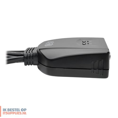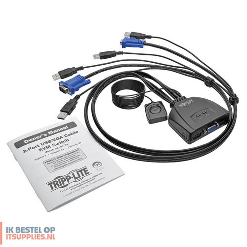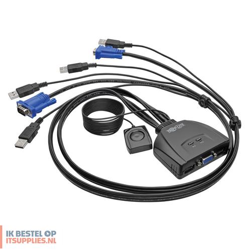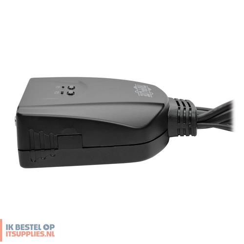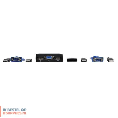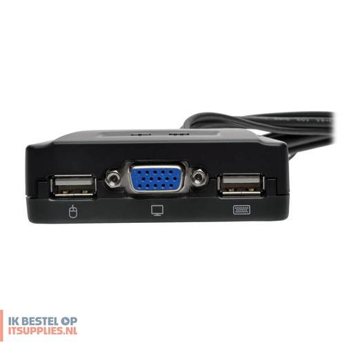 Tripp Lite B032-VU2. Aansluiting toetsenbord: USB, Aansluiting muis: USB, Aansluiting video: VGA. Maximum resolutie: 2048 x 1536 Pixels, Aantal gebruikers: 1 gebruiker(s). Kleur van het product: Zwart, Snoerlengte: 0,91 m, Maximum kabellengte: 0,91 m. Certificaten van naleving: RoHS. Breedte: 25,9 mm, Diepte: 66 mm, Hoogte: 79 mm