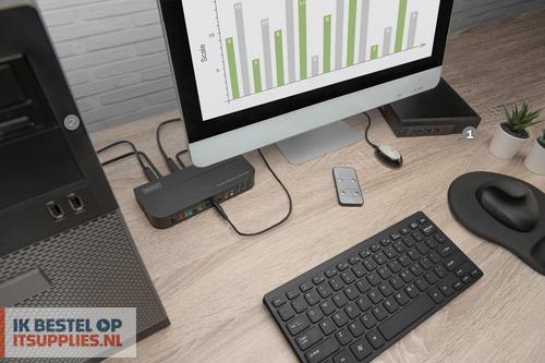 Digitus DS-12850. Aansluiting toetsenbord: USB, Aansluiting muis: USB, Aansluiting video: HDMI. HD type: 4K Ultra HD, Maximum resolutie: 4096 x 2160 Pixels, Videobandbreedte: 60 Hz. LED-indicatoren: Status. Spanning: 5 V, Output current: 3 A. Breedte: 178 mm, Diepte: 75 mm, Hoogte: 29 mm