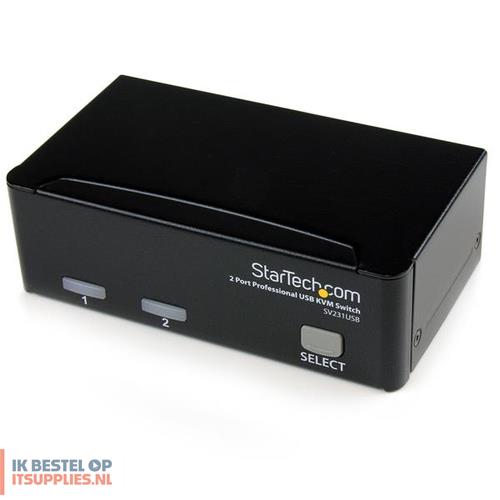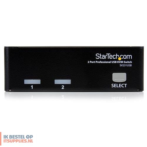 De SV231SUBGB 2-poort Professionele USB KVM-switch met Bekabeling biedt een eenvoudige bediening van 2 computers vanaf een enkele USB-toetsenbord/muis/monitor-combinatie.