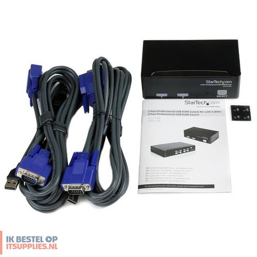 De 2-poort KVM-switch wordt geleverd met 2 USB KVM-kabels voor een complete kant-en-klare oplossing die u tijd en geld bespaart. Via de geïntegreerde 3-poort USB-hub kunt u USB-apparaten delen tussen computers alsof deze rechtstreeks zijn aangesloten. De compacte uitvoering met aansluitingen aan de achterzijde zorgt voor een opgeruimde werkruimte.