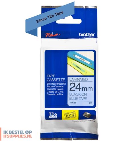 De gelamineerde zwart op blauwe TZe-551 labeltape is handig zowel bij u thuis, op kantoor als op de werkvloer en is erg nuttig om de inhoud van allerlei zaken te labelen, zoals dossiermappen, schappen en USB flash drives, maar ook kabels en andere apparatuur.