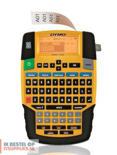 De DYMO Rhino™ 4200 voert uw labeltaken snel en correct uit. Navigeer eenvoudig dankzij het vertrouwde QWERTY-toetsenbord. Gebruik met één toets bediende "sneltoetsen" om snel snoer-/kabelwikkels, vlaglabels, streepjescodes van code 39 en code 128, labels met vaste lengte, modulelabels, enz. te creëren. Druk labels af tot 19 mm breed in flexibel nylon, permanent polyester en duurzaam vinyl. Druk bovendien rechtstreeks op krimpkousen af. Bespaar nog meer tijd met fantastische functies, zoals de "Favorieten"-toets die direct toegang verstrekt tot veelgebruikte labels, symbolen en termen en de "Custom"-toets waarmee u niet telkens alle stappen hoeft te herhalen door aangepaste instellingen te bewaren.