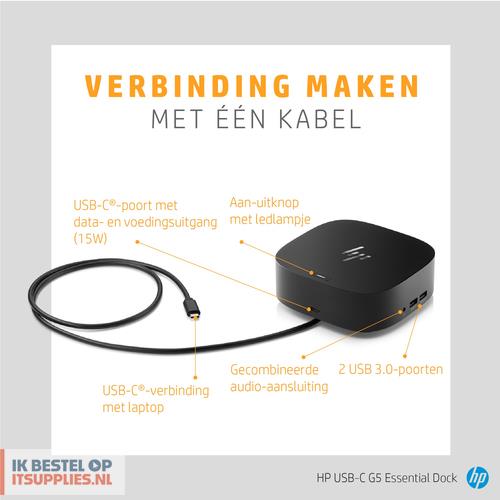 [1]. Maak je bureau en je hoofd leeg met dit HP USB-C G5 Essential Dock.