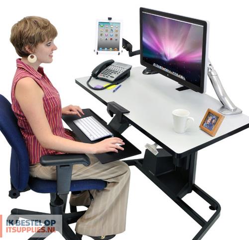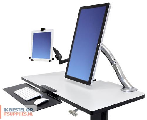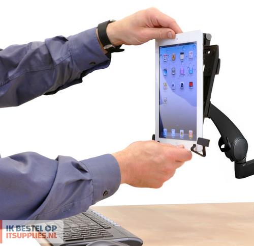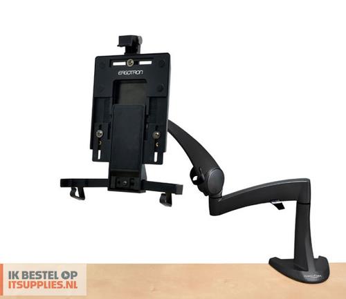 Ergotron Neo-Flex Tablet Arm. Kleur van het product: Zwart, Materiaal: Metaal, Minimale notebook-schermgrootte compatibiliteit: 25,4 cm (10"). In hoogte verstelbaar: 20 cm, Bereik kantelhoek: 0 - 180°, Draaihoek: 360°. Gewicht: 3,27 kg. Gewicht verpakking: 4,2 kg. Afmetingen verpakking (BxDxH): 462 x 370 x 159 mm