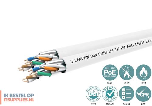 Lanview Cat6a U-FTP Dual Network Cable 4x2xAWG23 LSZH white - Cable - Network € -,--
