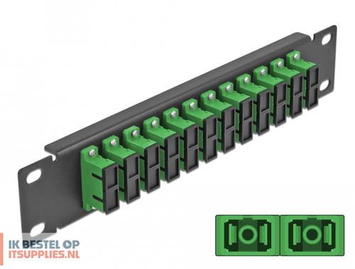 DeLOCK 66772. Ondersteundende kabel types: Fiber, Vezel-optische connector: SC. Kleur van het product: Zwart, Groen, Materiaal: Metaal, Montage: Rekmontage. Breedte: 44 mm, Hoogte: 10 mm, Diepte: 254 mm. Type verpakking: Doos