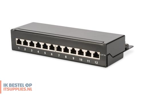 Digitus DN-91612SD-EA. Ethernet interface type: 10 Gigabit Ethernet, Aansluiting(en): RJ-45. Kleur van het product: Zwart, Materiaal: Gegalvaniseerd staal, SECC. Breedte verpakking: 175 mm, Lengte van de verpakking: 6 cm, Diepte verpakking: 60 mm. Land van herkomst: China