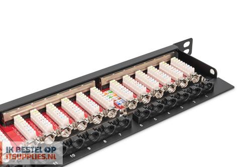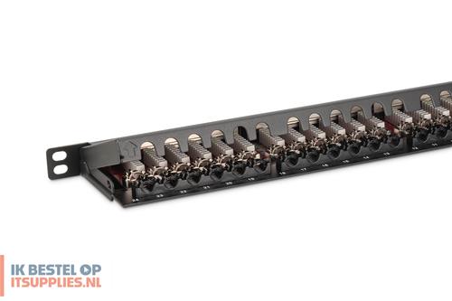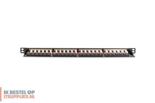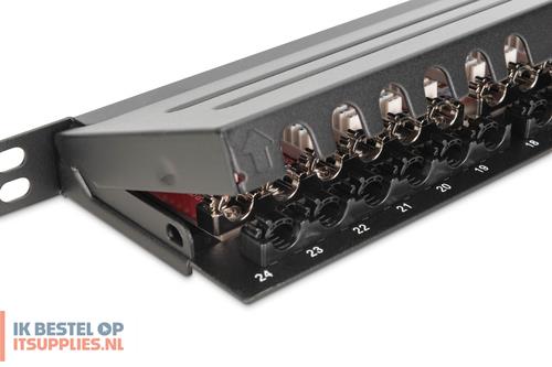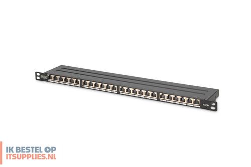Digitus DN-91624S-SL-EA. Netwerkstandaard: IEEE 802.3af, IEEE 802.3at, Aansluiting(en): RJ-45, Ondersteundende kabel types: Cat6a. Kleur van het product: Zwart, Materiaal: SECC, Montage: Rekmontage. Certificering: EN1.4301, UNS S30400, AISI 304, LMSAD110. Breedte verpakking: 140 mm, Diepte verpakking: 530 mm, Gewicht verpakking: 1,5 kg. Land van herkomst: China