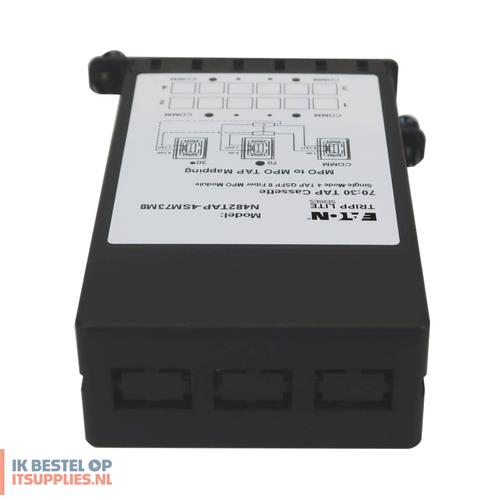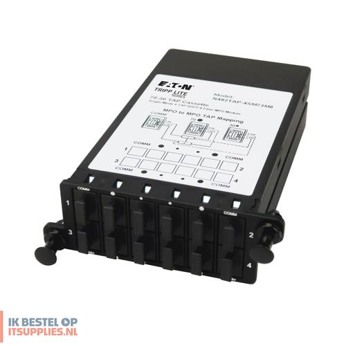 Tripp Lite N482TAP-4SM73M8. Netwerkstandaard: IEEE 802.3ae, Ethernet interface type: 40 Gigabit Ethernet, 100 Gigabit Ethernet, 400 Gigabit Ethernet, Vezel-optische connector: MTP/MPO. Kleur van het product: Zwart, Compatibele producten: Tripp Lite N482-00U, Tripp Lite N482-01U, Tripp Lite N482-02U, Tripp Lite N482-04U. Certificaten van naleving: REACH, RoHS. Breedte verpakking: 190,5 mm, Diepte verpakking: 121,9 mm, Hoogte verpakking: 50,8 mm. Land van herkomst: China, (Buitenste) hoofdverpakking breedte: 391,2 mm, (Buitenste) hoofdverpakking lengte: 325,1 mm