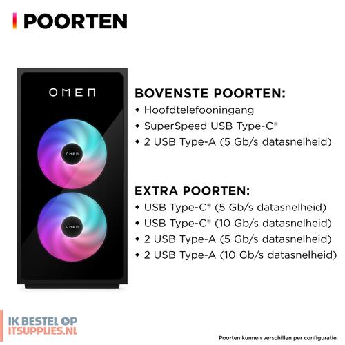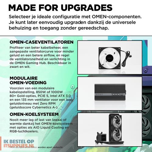 [1] en heeft een geavanceerde videokaart en OMEN-componenten voor optimale kracht en koeling. Je kunt deze gaming desktop upgraden zonder gereedschap en volledig naar jouw smaak aanpassen.