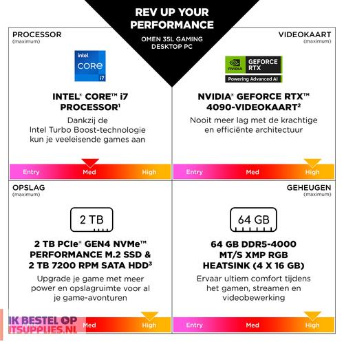 Ervaar ultieme gameprestatiesDe OMEN 35L gaming desktop is gemaakt voor ultieme prestaties. Hij is voorzien van de nieuwste Intel Core™-processor