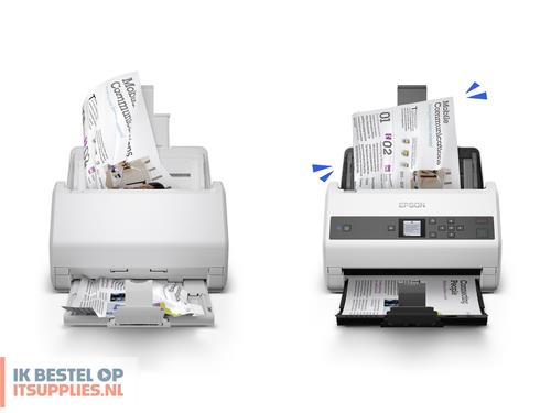 Efficiënte documentverwerkingGebruikers hoeven zich geen zorgen te maken over de verschillen tussen documenten die ze moeten scannen, want deze scanner heeft de uitgebreidste mediaverwerking van Epson van 27 g/m² tot 413 g/m² en een modus om papier tot 6096 mm te scannen. De langzame modus (Slow mode) vermindert de wrijving door de rolsnelheid te verlagen. Hiermee wordt het makkelijker om kwetsbare of beschadigde documenten te scannen, zonder de bestandsgroottes te vergroten. Het actieve rollensysteem voor papierscheiding (Active Separation Roller System) voorkomt het ongemak van dubbele invoer van documenten, zodat elk afzonderlijk vel papier wordt gescand. Daarnaast kunt u met de Double Feed Detection Skip-functie (DFDS) lastige media als enveloppen of documenten met Post-It-notities scannen.