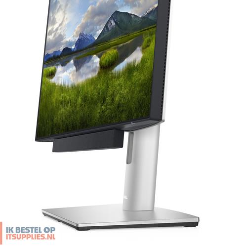 De soundbar wordt magnetisch aan uw Dell monitor bevestigd, zodat u uw monitor in elke gewenste richting kunt kantelen, draaien en zwenken, zonder dat de soundbar in de weg zit. De USB-kabel van de soundbar past precies in de USB-A-poort aan de achterzijde van de monitor, zodat deze niet zichtbaar is. - Eenvoudig te installeren en bevestigen