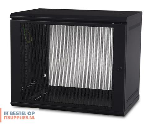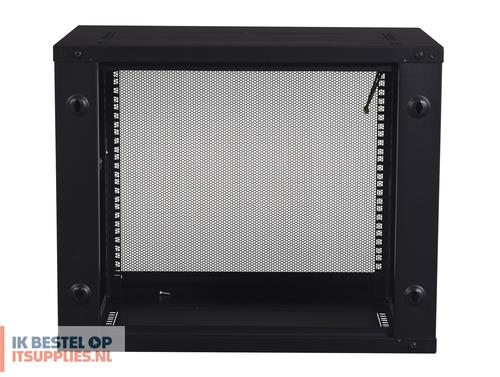 Dit compacte te vergrendelen rack is geschikt voor allerlei soorten 19inch IT/netwerk apparatuur. Door 9U/HE interne hoogte en 2 te verstellen rackmount stijlen monteer je eenvoudig rackmountable apparaten (max 329mm diep). Door zijn beperkte afmetingen en gewicht(12,7KG) is hij eenvoudig aan de muur te monteren. Doordat de deur zowel rechts- als links openend gemonteerd kan worden, past hij in vrijwel iedere omgeving.