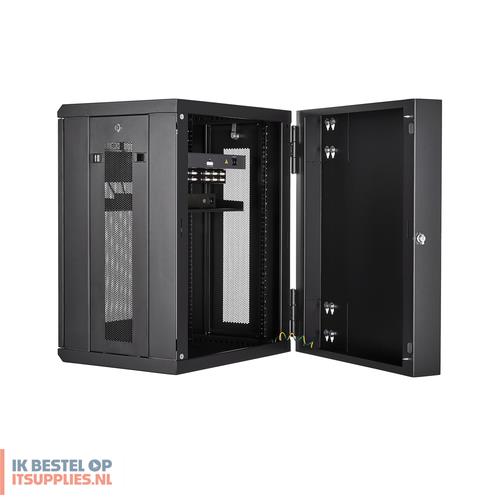 Gebruik deze wandmonteerbare netwerk cabinet om uw server of netwerkapparatuur aan de wand te bevestigen. Behuizing met scharnierdeuren voor eenvoudige toegang.