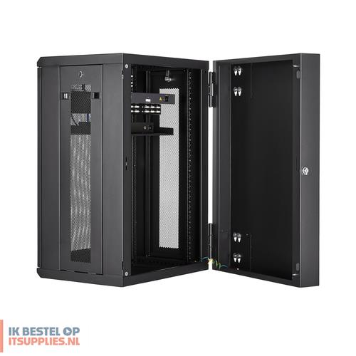 Wandmonteerbaar netwerk cabinet | Diepte 40cm (16") | EIA-310 | 4 Post | Capaciteit 90kg | Vergrendelbaar | Voorgemonteerd