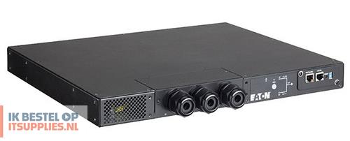 Eaton EATS30N. Type product: Netwerkbeheerkaart, Vormfactor: Rackmontage, Kleur van het product: Zwart. Type beeldscherm: LCD. Frequentie: 50/60 Hz. Certificering: IEC/EN 60950-1, IEC/EN 62310-2, CE. Breedte: 440 mm, Diepte: 390 mm, Hoogte: 43 mm