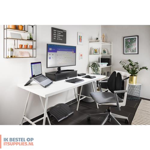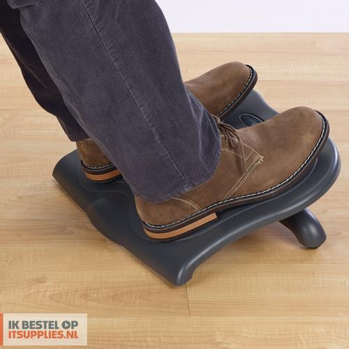 Iets verhoogde beenpositie verbetert houding en bloedsomloop. Is voorzien van drie hoogte-instellingen en drie kantelstanden. Groot antislipoppervlak. Gaat ongemak door zittend werken tegen.